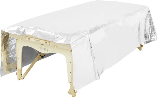 ヒート系トリートメントメニューに欠かせない、大判サイズのアルミ蒸着のシートです。ゆとりのあるサイズで、お客様の体型を選びません。