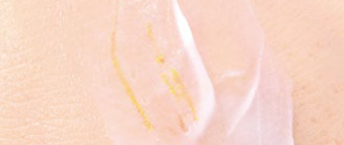 お肌にのせ、馴染ませると金箔がスッと消え、金のマイナスイオン作用でお肌の奥