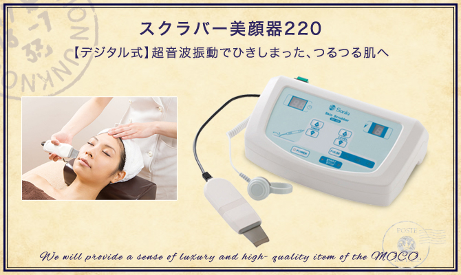 『スクラバー美顔器220』は、超音波振動で古い角質・角栓・肌の汚れを浮き立たせヘラで取り除く機械です。振動が肌を活性化させ、ひきしまった肌を取り戻します。 低消費電力で超音波振動が可能です。また、25,000回/秒の振動回数で輝きのある美しい素肌に。