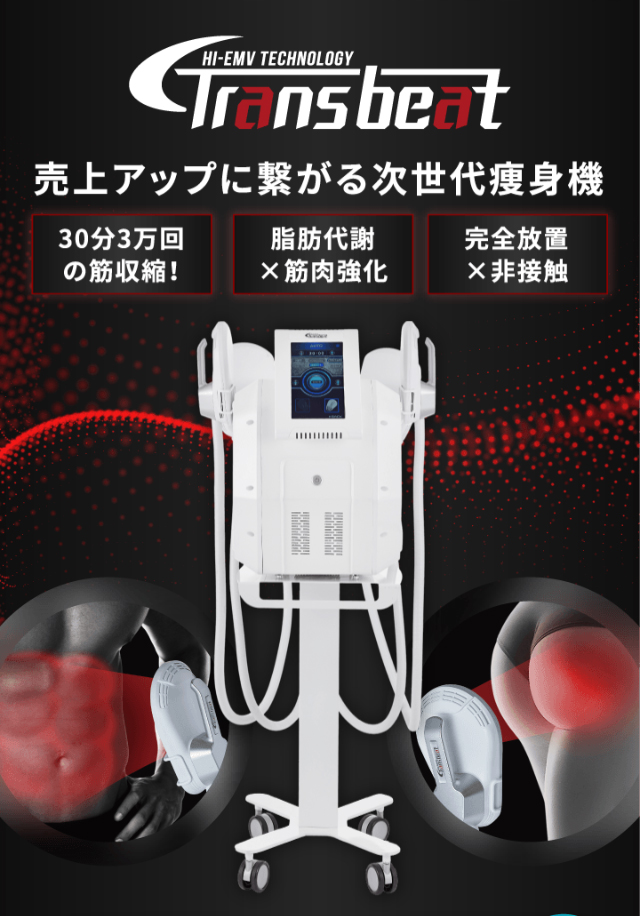 Trans beatトランスビートはその施術の手軽さから、他業種様でも簡単に痩身メニューを加えられ、堅実な売り上げのアップに貢献いたします。