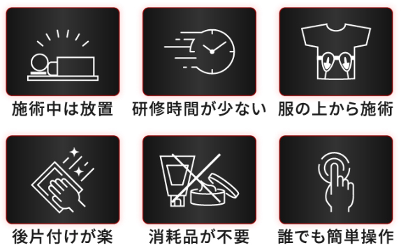 施術中は放置でき、研修時間が少なく、服の上から施術が出来ます。