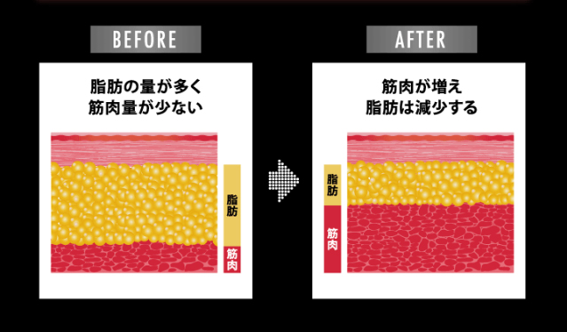脂肪は減らし筋肉は増やす事で効果の最大化と代謝の向上、リピート率アップそして、リバウンド防止