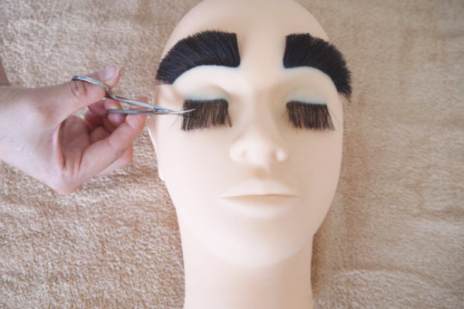 まつ毛が一本一本埋め込まれており、引っ張っても抜けませんので、しっかり練習することができます。
