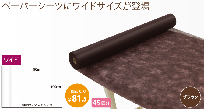 マッサージベッドの側面も全てシーツで覆いたい方向けのワイドサイズです。 1カットも200cmごとに入っているので裂けにくいのが特徴です。