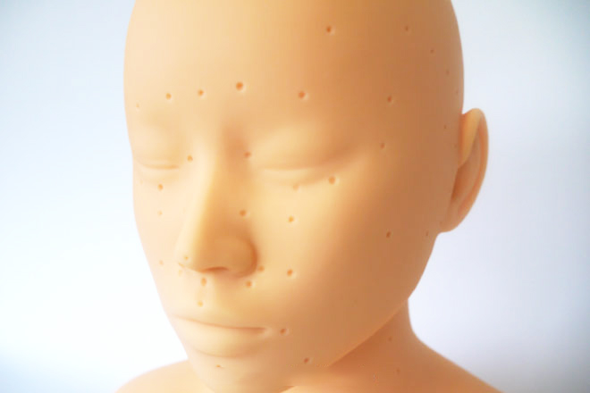 マッサージ練習用としてツボの位置にくぼみがあります。