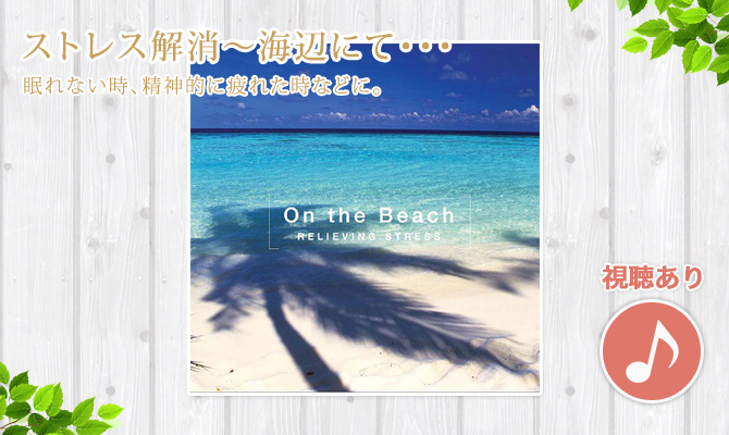 海を眺めていると、自然と心が落ち着いていくように、静かな波の音にもその効果 があります。碧く広い海にゆったりと包まれながら、穏やかな時の流れを感じて下さい。眠れない時、精神的に疲れた時などに。